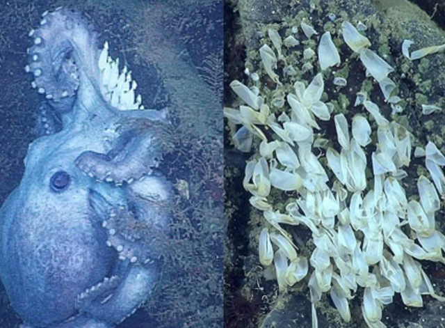 许多头足类(也就是章鱼、鱿鱼、乌贼这些)有着非常独特的繁殖策略——它们采用单次繁殖的策略。 简单地说,这些动物产卵就意味着死亡! 当然,对于许多雌性头足类来说,它们并不是产卵后直接死亡,而是以一种更令人费解方式结束生命——它们会不吃不喝地守在卵周围,直到死亡。 我知道一种名为北太平洋谷蛸 (Graneledone boreopacifica)的深海章鱼,它们被人观察到,雌性在产卵后持续4年时间不吃不喝。