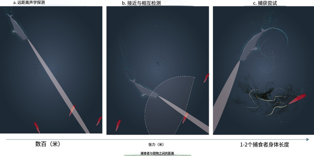 △ 天然龙涎香 “科技领先”的鲸豚类 在鲸豚类到来之前,头足类动物的进化主要是为了躲避视觉捕食者,比如各种鱼。 所以,它们的反捕食策略是变色和喷墨等妨碍视觉的方式。 然而,鲸豚类不仅是视觉捕食者,它们作为陆地哺乳动物,拥有明显的感官和生理优势,甚至进化出一种特殊的能力——回声定位。 鲸豚类的回声定位在海洋中不断完善——以至于今天的那些大型齿鲸能够扫描超大片水域,从数百米之外探测到猎物的位置。 这对头足类来说就是降维打击,变色和喷墨毫无作用。 更重要的是,头足类几乎听不到鲸鱼回声定位时使用的声波频率,也就是说在鲸鱼了解它们位置的时候,它们根本不知道鲸鱼的信息,这是完全信息不对等的战斗。 不过,面对鲸豚类带来的新压力,头足类也逐渐发生了转变,找到了许多应对措施。