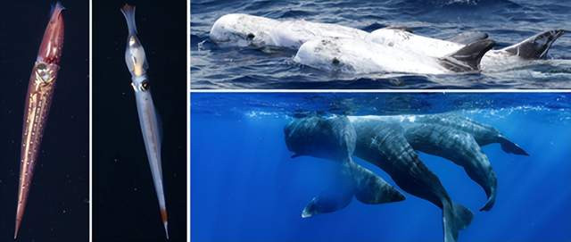 头足类的应对策略 首先,第一点就是改变生殖策略,许多头足类都采取单次繁殖动物,即便是那些体型很大的深海头足类也是如此。 单次繁殖的动物体型通常都不大(一些需要长距离迁徙繁殖的动物也会采用这种策略),较小的体型让它们拥有更大的生存压力——因为需要面对各种各样的捕食者。 如果一种动物的生存压力很大的话,那么快速生长,然后不挑剔配偶,快速将基因传递出去,是不错的选择。 鲸豚类带给头足类的生存压力可能比想象得要大,以至于那些深海的巨型头足类也依然得采用“快速生存,英年早逝”的策略。 其次,一些头足类动物进化出了细长的身体!