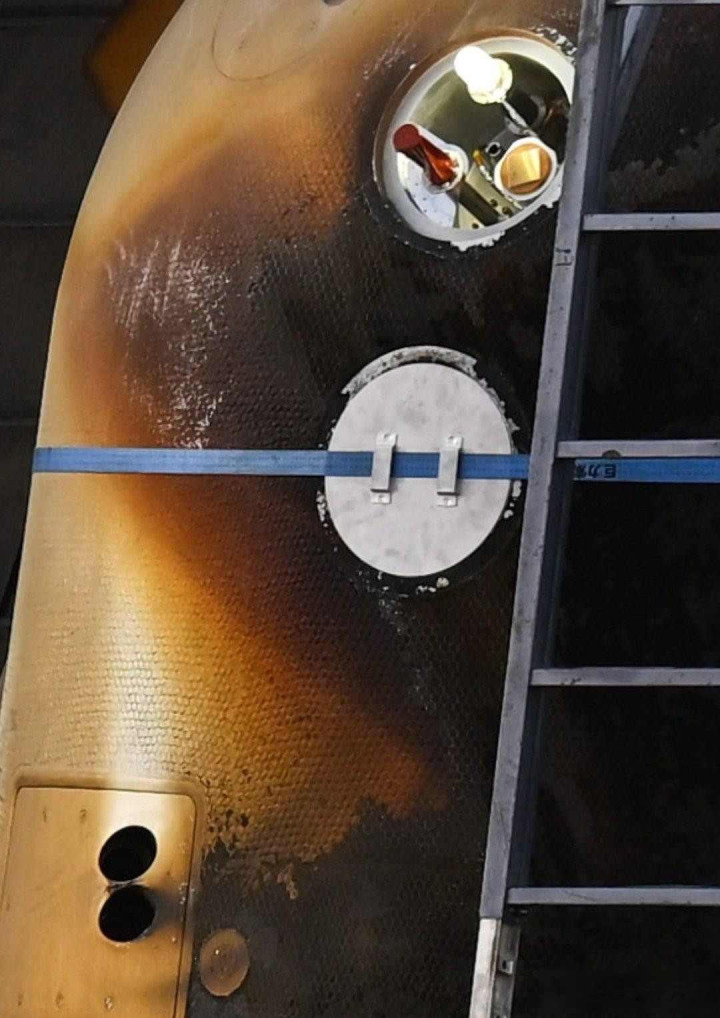 现场画面里,返回舱的腰线缠着蓝色绑带,受损的舷窗被一块白色隔板挡着,有人说这是为了防进一步损坏,也有人觉得跟技术保密有关,毕竟怎么从舱里修玻璃,修完后能不能扛住压力,这些细节别的国家还没弄明白。