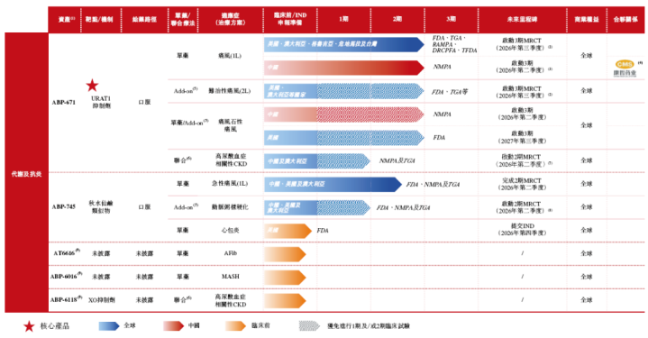主要业务 新元素药业,缔造于2012年,四肢一家专注在代谢、炎症和心血管疾病限度开拓具有众人竞争力和生意价值疗法的生物时刻公司,涵盖痛风患者的全经由照顾,全方向管制高尿酸血症、慢性痛风、急性痛风、痛风石溶化及与高尿酸血症掂量的CKD等问题。 当今,新元素药业设立了包括两项处于临床阶段的居品及多项处于临床前阶段的项意见居品管线。 新元素药业自主研发的中枢居品ABP-671具有独到的化学结构,与苯溴马隆及基于其母核的繁衍物比拟,摒除了肝毒性风险。ABP-671的靶向选拔性更高,降尿酸疗效更优。当今ABP-671正在好意思国和中国同步开展用于颐养痛风和高尿酸血症的2b/3期临床闇练,有望成为最好的对准一线颐养市集的1类立异型尿酸转运卵白1(URAT1)扼制剂。ABP-671在多项除痛风与高尿酸血症之外的合乎症中亦展现出有出路的临床前成果,包括吞并高尿酸血症CKD以及难治性痛风(或痛风石性痛风)。 临床阶段居品还包括ABP-745,为秋水仙碱通常物,是一款针对急性痛风颐养具有权贵疗效与突出安全性的小分子立异药。ABP-745已在好意思国奏效完成1期临床闇练,并已鼓舞知心意思国、澳大利亚、中国等地区的众人多中心2期临床闇练阶段。ABP-745还在动脉粥样硬化颐养限度具备强大颐养后劲,有望在现存降脂疗法基础上,米兰体育官网进一步齐备斑块体积减轻与心血管临床获益擢升。公司正积极筹算于2025年第四季度,针对ABP-745动脉粥样硬化合乎症,在好意思国与中国同步递交参加2期临床琢磨的琢磨型新药苦求,以期充分开释ABP-745在心血管疾病颐养限度的后劲。 此外,公司还推出了一系列临床前管线,包括AT6616(用于颐养心房轰动)、ABP-6016(旨在颐养代谢功能阻难相关性脂肪性肝炎)、ABP-6118(用于颐养与吞并高尿酸血症CKD)。