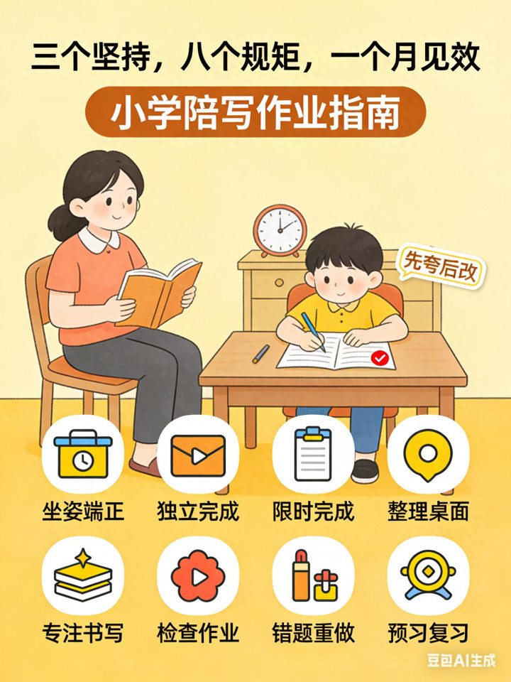 陪孩子写功课,到底要不要陪?奈何陪?我家踩过坑,自后定了“三个坚捏,八个限定”,一个月下来,妮儿从“拖拉大王”酿成了“功课小高手”。共享给你。 三个坚捏 坚捏一:固定技术,雷打不动 下学回家休息15分钟,然后初始写。每天相通,周末也不例外。孩子生物钟调过来,到点就坐书桌前,无谓催。 坚捏二:你在傍边,但不惊扰 我坐傍边看书或责罚使命,不盯着她写。她叫我我才当年。不送生果、不递水、不支手舞脚。她在专注,你别打断。 坚捏三:先夸后改 写已矣先找亮点:“今天这个字写得好”“这说念题想路很明晰”。再说那处要改。孩子有树立感,才快意听你提出。 八个限定 1. 写功课前准备好:铅笔削好、橡皮尺子放好、水喝好、茅厕上好。一朝坐下,不许离开。 2. 桌上不放任何玩物和零食:讲义、功课本、笔盒,三样东西。别的收走。 3. 先温习再下笔:花5分钟翻一遍今日学的例题,脑子热了再写,顺畅好多。 4. 限时完成:每项功课定闹钟。比如口算10分钟,米兰到点停。超时也不加,但记载原因。冉冉她对技术有倡导了。 5. 不会的先跳过,临了统共问:不卡在一说念题上,不喊妈。全部写完再回头磋商,确切不会的再乞助。 6. 不边写边对谜底:谜底收走。写完长入查验,不是写一说念看一说念。 7. 我方查验,不依赖姆妈:查验出乌有我方改,没查验出来被憨厚打叉,我方承担成果。 8. 完成后解放安排:几点前写完,剩下的技术齐是她的。看动画片、玩玩物,不过问。写越快,玩越多。 这八个限定,第一周孩子会不允洽,你坚捏住。第二周初始顺,第三周成习尚,第四周你就能看到变化——无谓吼,无谓催,她我方坐到书桌前。 我家等于这么。你也试试,一个月后回想谢我。