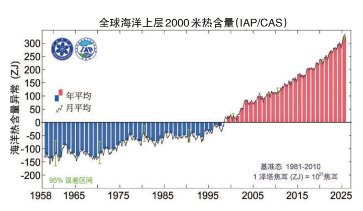 潘玉莹 中国科学家领衔的国际研究团队日前发布了《2025年全球海温变化研究报告》。报告指出,2025年全球海洋上层2000米热含量已连续9年刷新有观测记录以来的最高值,同时,全球平均海表温度位居历史第三高位,全球变暖趋势十分明确。那么,海洋热含量(OHC)为何会成为全球变暖的重要指标?为海洋“体检”能更深入地解读气候变化吗?
