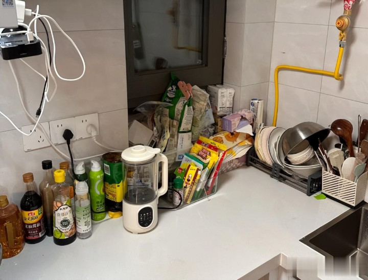 4:厨房台面都是物品 厨房是家里的重灾地,这里打理不干净,作念饭样式不好,看着还脏乱, 你家是不是也这么,厨房每天擦擦擦,还是会很油?