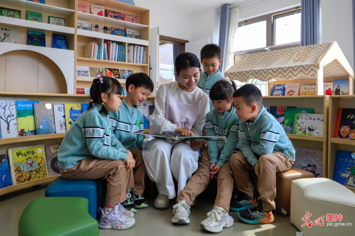 2026年4月15日,安徽省黄山市黄山区浦溪幼儿园开展丰富多彩的念书主题举止,激勉幼儿阅读趣味,营造浓厚书香氛围。(潘祥瑞摄/光明图片)