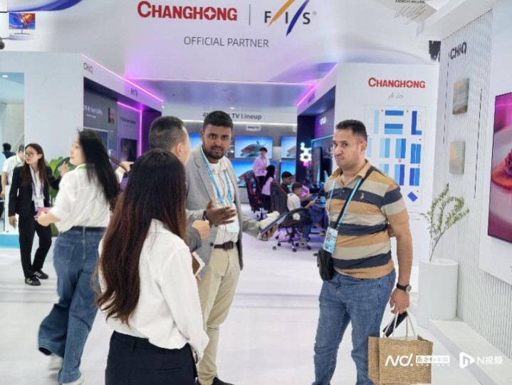 步入长虹展台,C位的长虹金标T70S备受列国采购商见谅。据了解,该款新品系长虹翻新推出AI全链路光色场同控本领决策,从底层打破传统RGBMiniLED混色痛苦,完好意思光影、颜色、场域的同步适度。长虹电视现场认真东谈主先容,这款长虹金标T70S贬责的是电视“懂环境”的本领命题,举例,Q70S能感知画⾯内容:当播放深空记载⽚时,光翼流转出深奥的幽蓝;当切换到情感赛事,光翼则迸发出强烈的橙红。它也能识别环境氛围,⾃动匹配当下最合适的光效。
